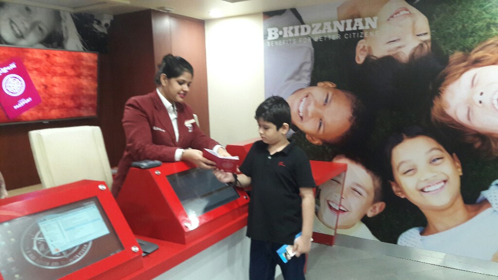 As we entered inside the miniature city square, we were greeted and welcomed by the Zupervisors who guided us to get our pazzport formalities complete with Jeehan’s photograph. Next was a visit to the Yes Bank, to encash the cheque for 50KidZos.