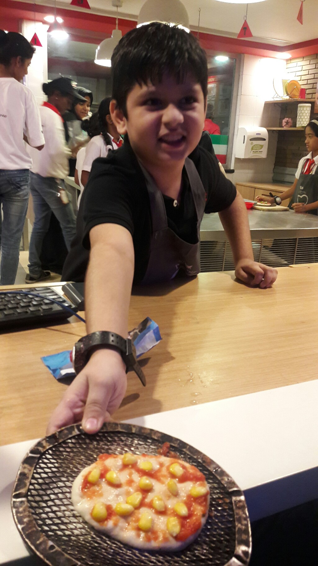 I am sure Jeehan couldn’t have had a more productive day in his entire 8 years of life. However, he remained focused to the cause of earning as many KidZos to add to his wallet. At a few venues, he was glad of spending to learn some new skills like making some lip-smacking dishes which he later got to enjoy. He took great pride in posing with pictures of his handiwork and he even generously offered to share it with me. My little monster remained proud of his achievement and so was I !